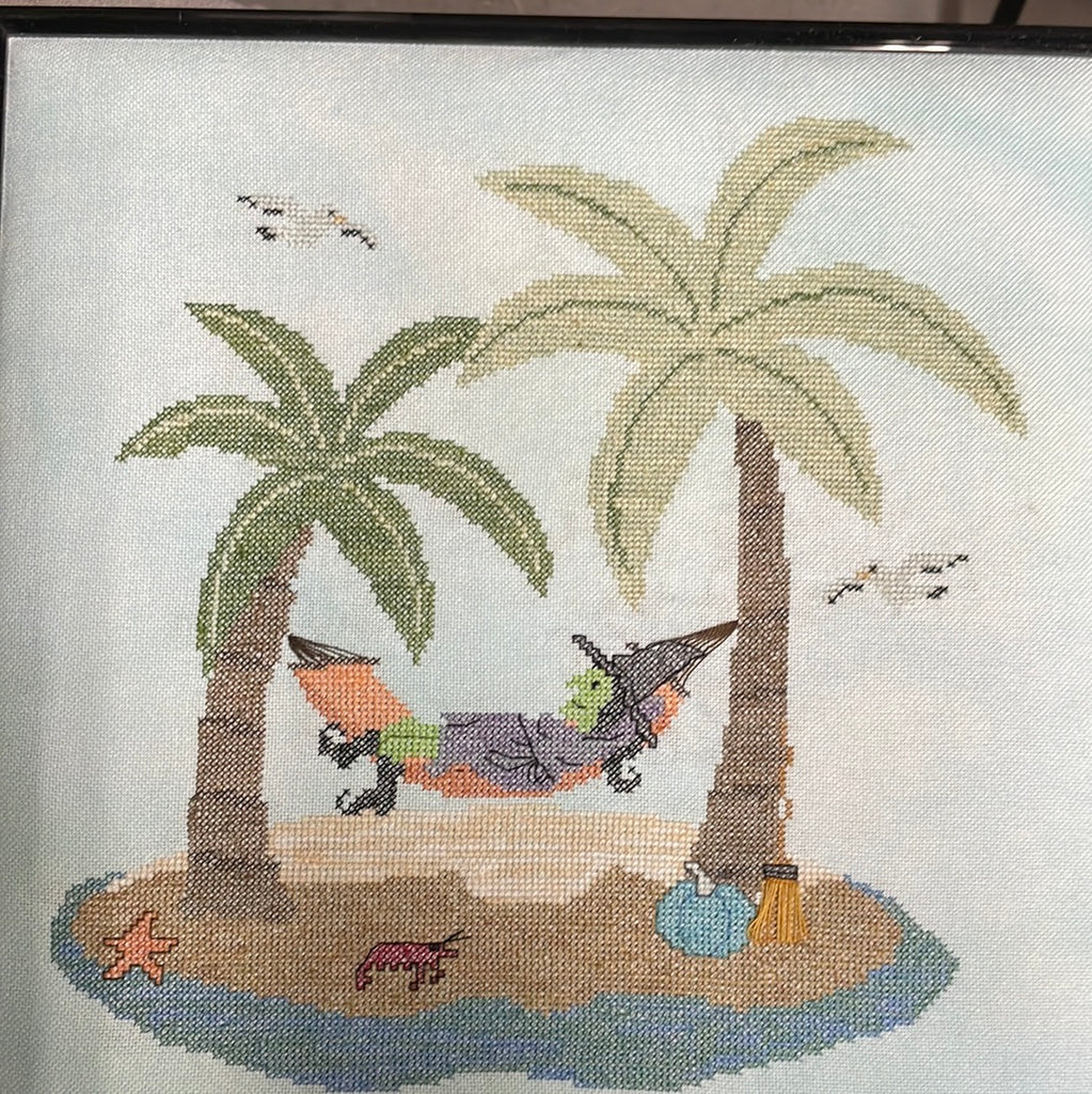 Model stitched on 28 count Ocean Waves Lugana