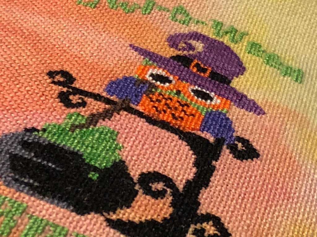 The "Owl-O-Ween Brew" pattern uses full cross to create the final product.