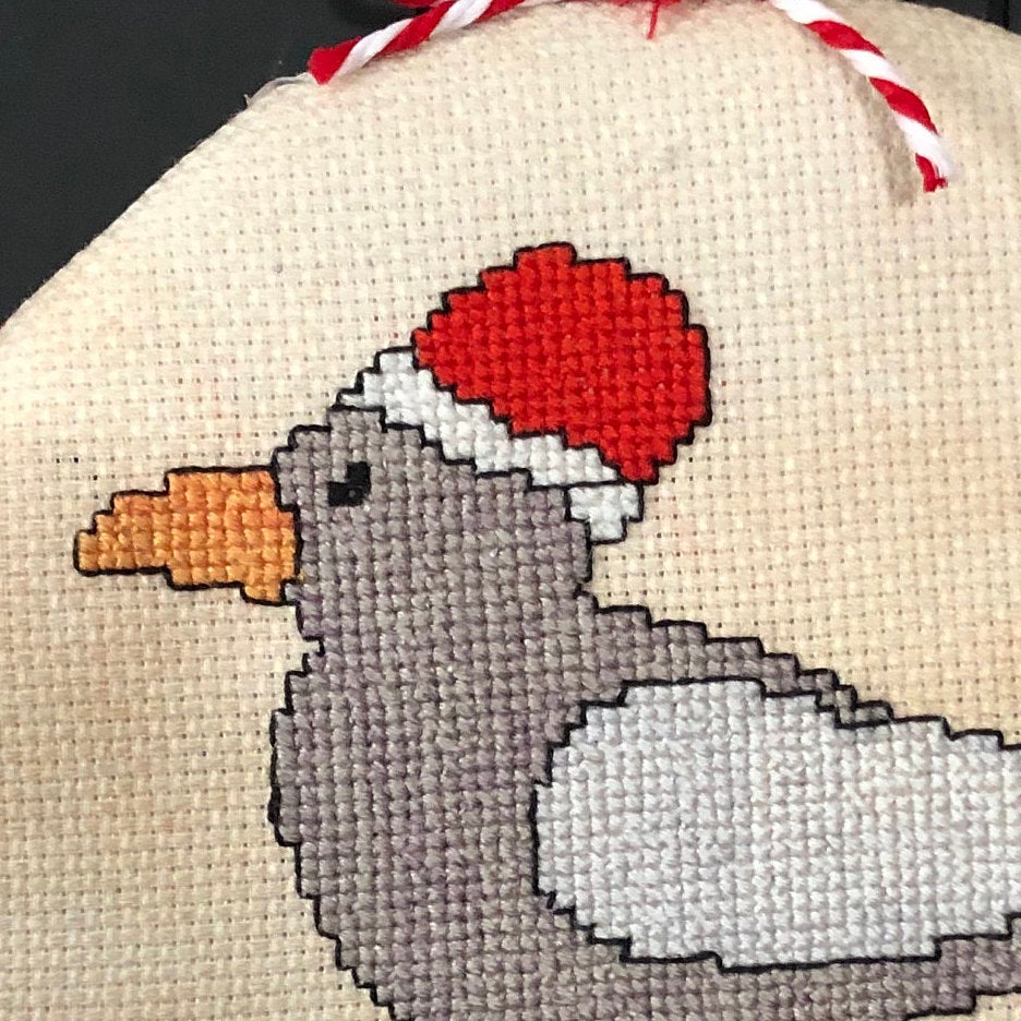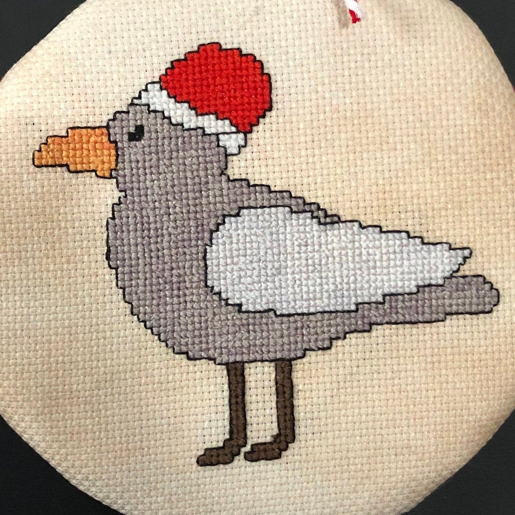 The "Seagull Santa" pattern uses full cross to create the final product.