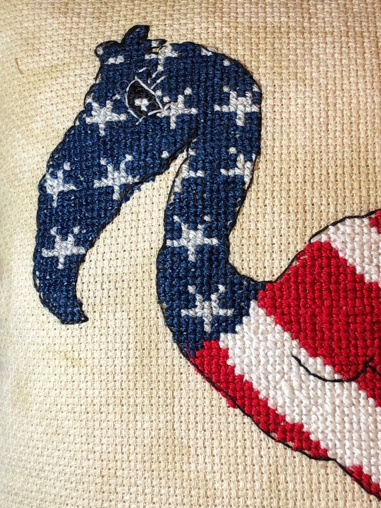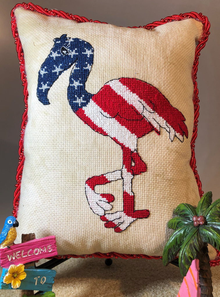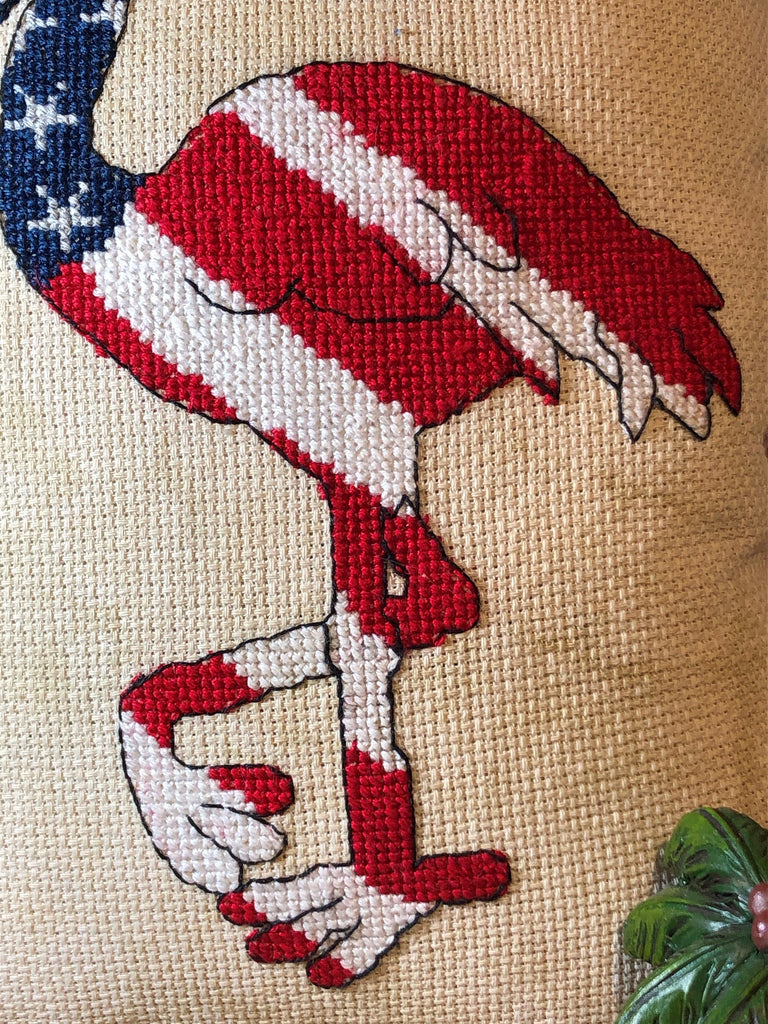The "Star Spangled Flamingo" patterns uses full cross to create the final product.