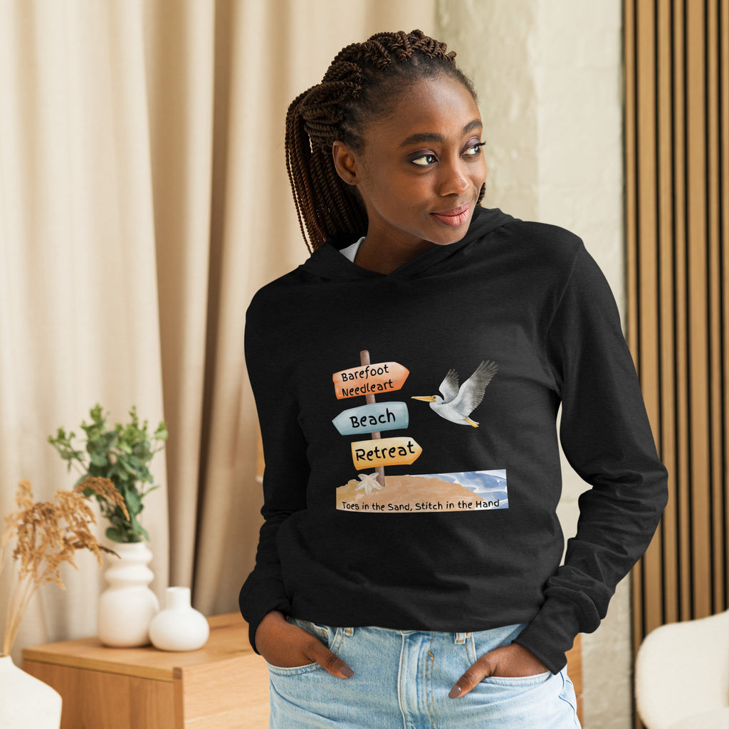 With its long sleeves and comfortable hood, this tee is perfect for layering, allowing you to create stylish outfits all year round. Plus, its lightweight construction allows for unrestricted movement, ensuring that you feel at ease no matter the occasion.