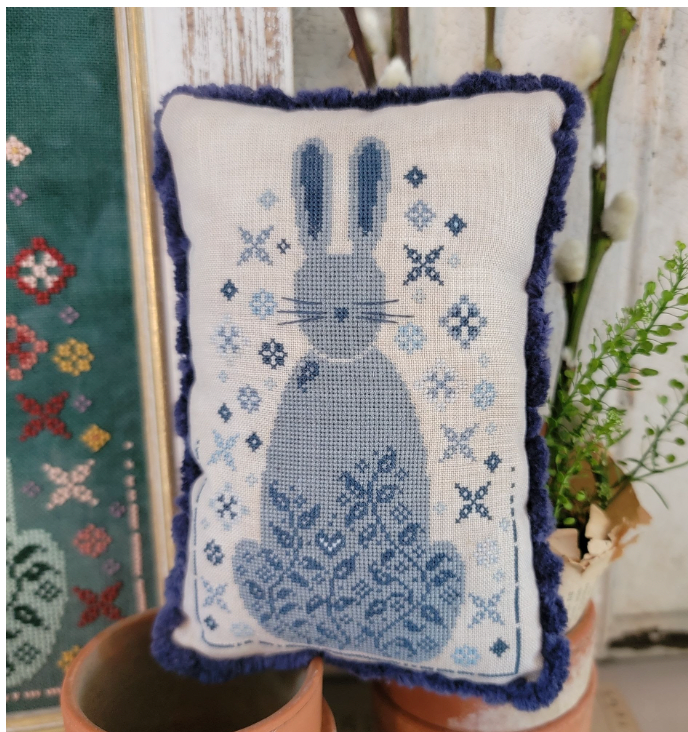 I love the various looks you can achieve by simply switching the color palette of a pattern, and I really can't decided which of these two is my favorite! The Indigo version was stitched on 56 count linen and it's miniature size is absolutly charming!