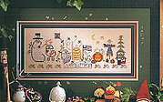 This whimsical year-round scene was stitched on 19 Ct. Antique Ivory Cork Linen using Classic Colorworks, Gentle Arts Sampler Threads and Weeks Dye Works (or DMC floss 822, 823, 433, 644, 310, 729, 676, 931, 315, 520, 316, 902, 3052, 301, 3041). Stitch Count: 57x157. Design Size: 3" x 8".
