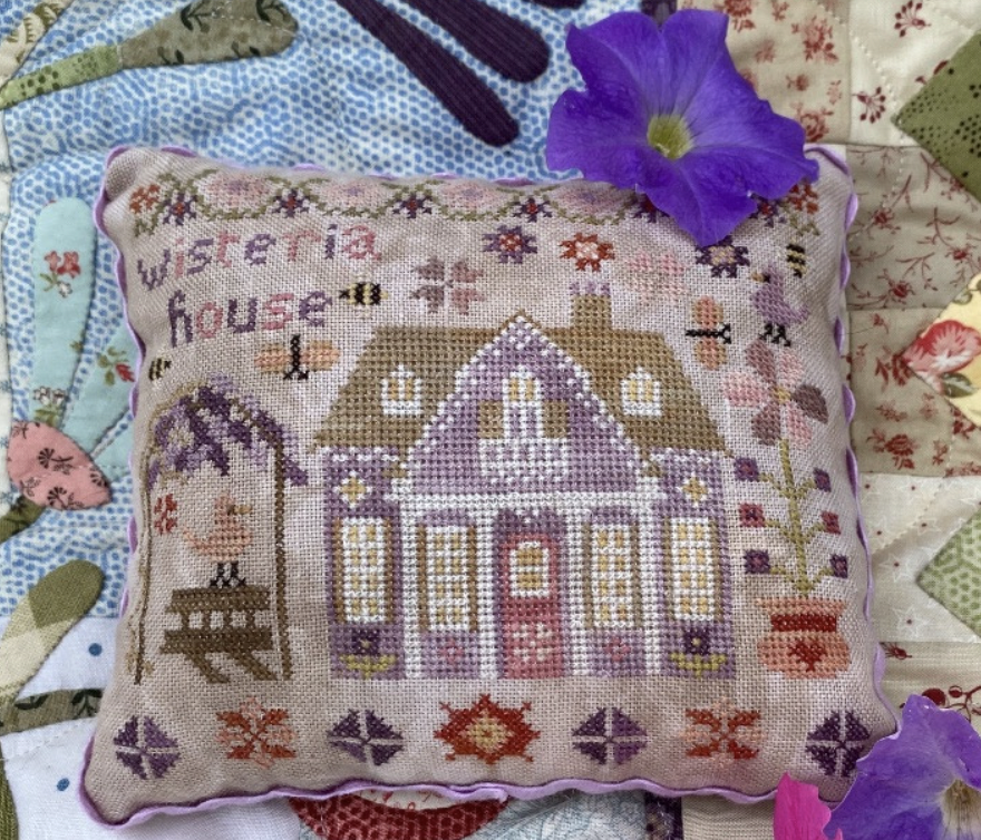 Stitch count is 97 x 87. Each house is stitched on 36 count Faun by Picture this Plus, one strand of floss over two linen threads. The enitre series is being stitched on 36 count Cocoa Linen by Weeks Dye Works.