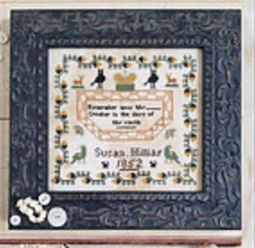 Model stitched one over two on 36 Ct. Legacy linen using Needlepoint Inc Silk (or DMC floss 3363, 934, 3371, 523, 3046, 729, 3864, 3863, 831, 310).