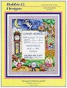 The border of the design features your favorite fairy tales including Humpty Dumpty, Mother Goose, Hickory Dickory Dock, and The Cow Jumped Over the Moon. Stitch Count: 168H x 136W. Design Size: 12" x 10"