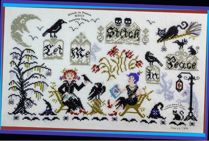 This design is charted in both DMC cotton and Dinky Dyes silk floss in 9 colors, 10 skeins.