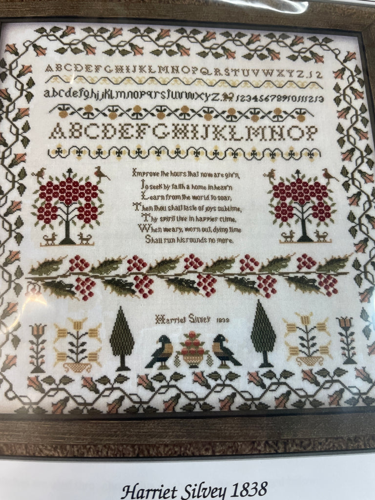 Harriet Silvey 1838 Holly Leaf Border Sampler