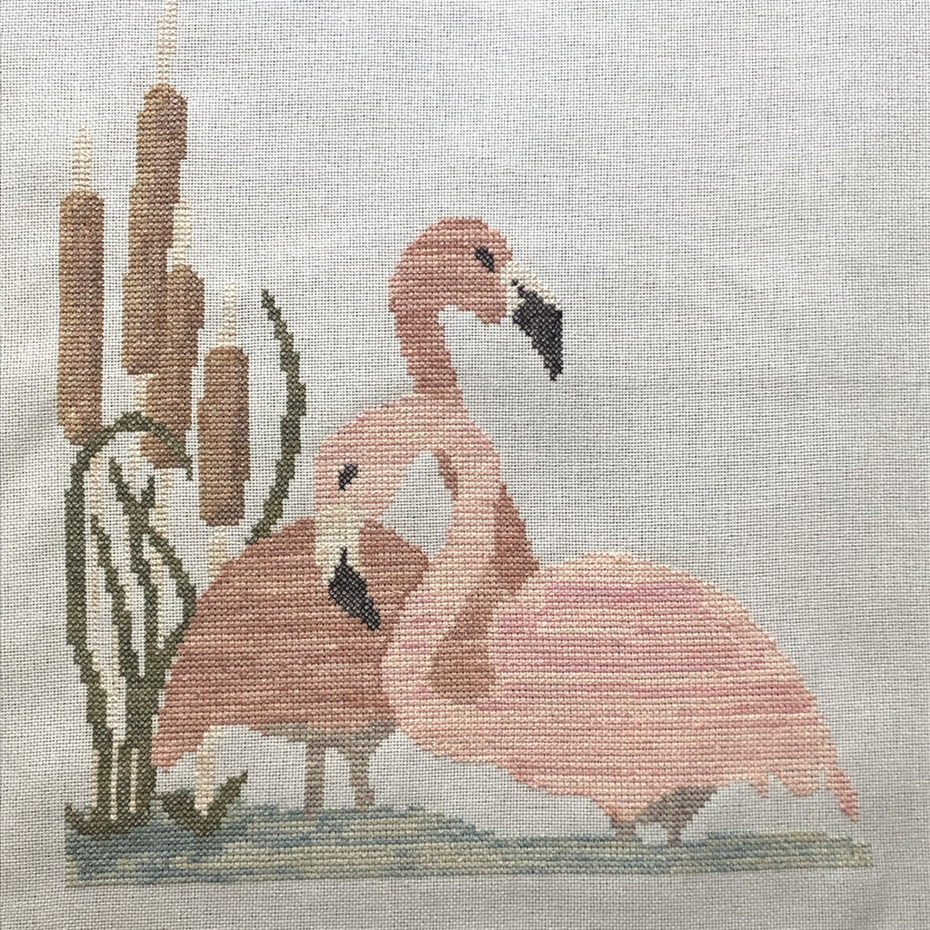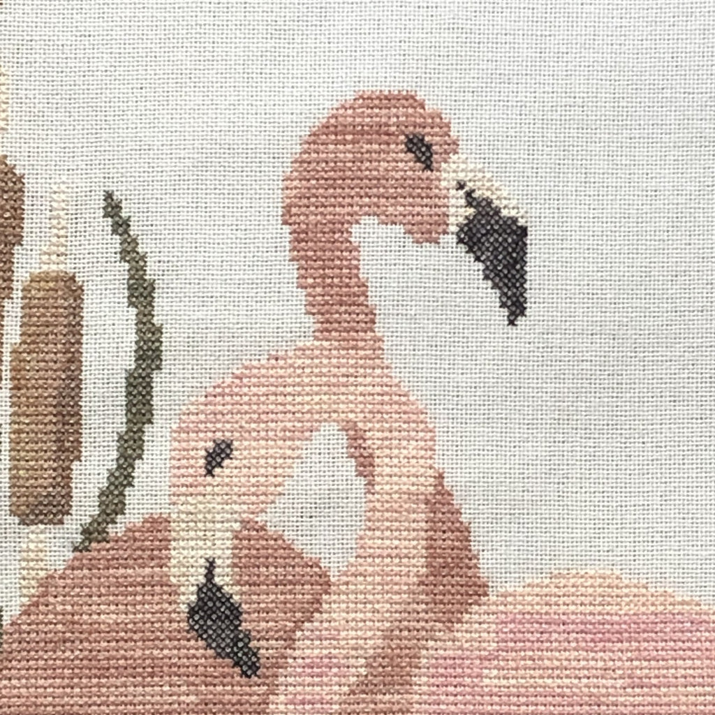 Model is stitched with 1 thread over 2 on 28 count Lugana Blue Ice by Wichelt.