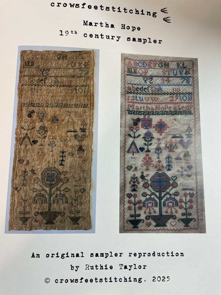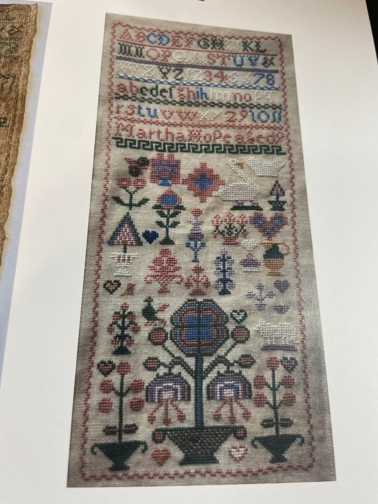 provides DMC floss list to complete sampler in a new colorway or the more primitive way such as in the original