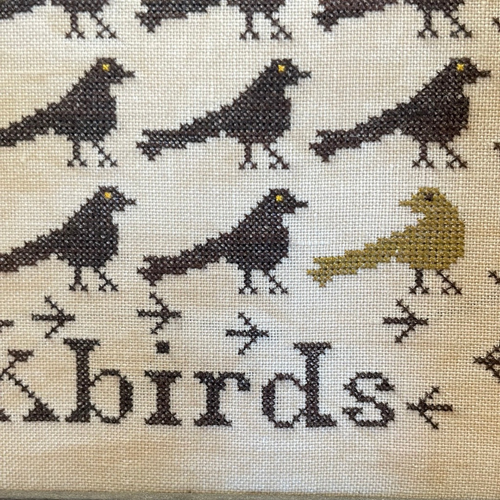149x159 stitch count using CCW Polliwog, CCW Blackbird and GA Gold Leaf. DMC Conversion is provided