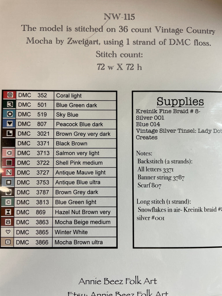 stitch count 72x72 on vintage country mocha linen in 36 count