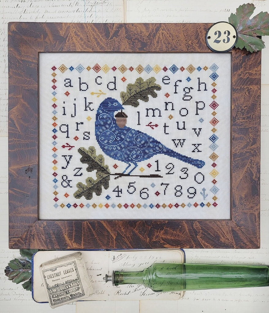 Model is stitched on 36 count "Cream and Sugar" linen from Fiber on a Whim.Stitch Count - 157 x 139