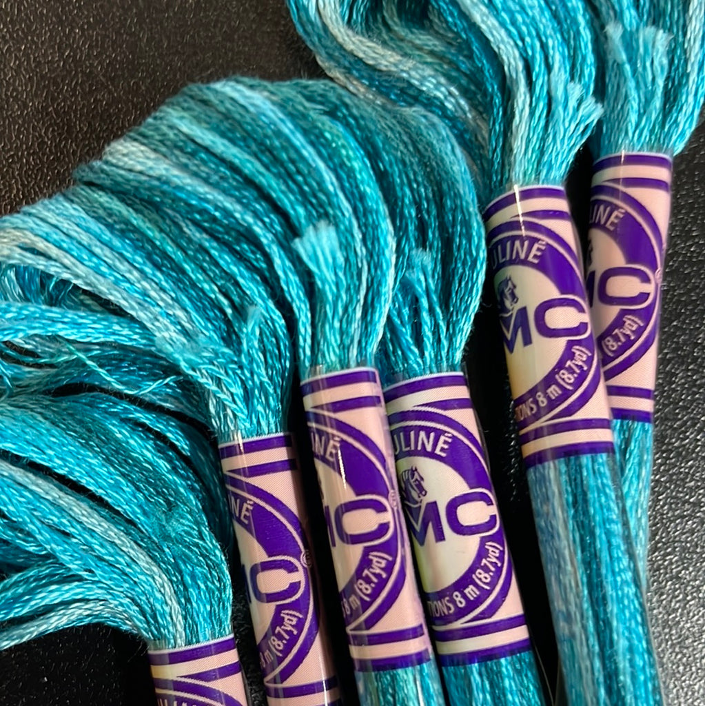 The beauty of unique color variations blended into one thread. Color Variations gives you the look of hand dyed floss with the added quality and reassurance that they are made by DMC. Twenty-four beautiful multi-color and tone on tone shades that are colorfast. Create one of a kind needlework designs with a new shade revealed every 5 to 7 stitches. Let the unique color reveal itself in just a few simple stitches