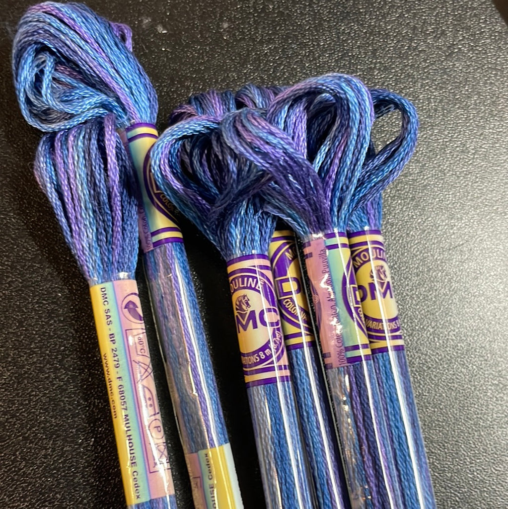 The beauty of unique color variations blended into one thread. Color Variations gives you the look of hand dyed floss with the added quality and reassurance that they are made by DMC. Twenty-four beautiful multi-color and tone on tone shades that are colorfast. Create one of a kind needlework designs with a new shade revealed every 5 to 7 stitches. Let the unique color reveal itself in just a few simple stitches