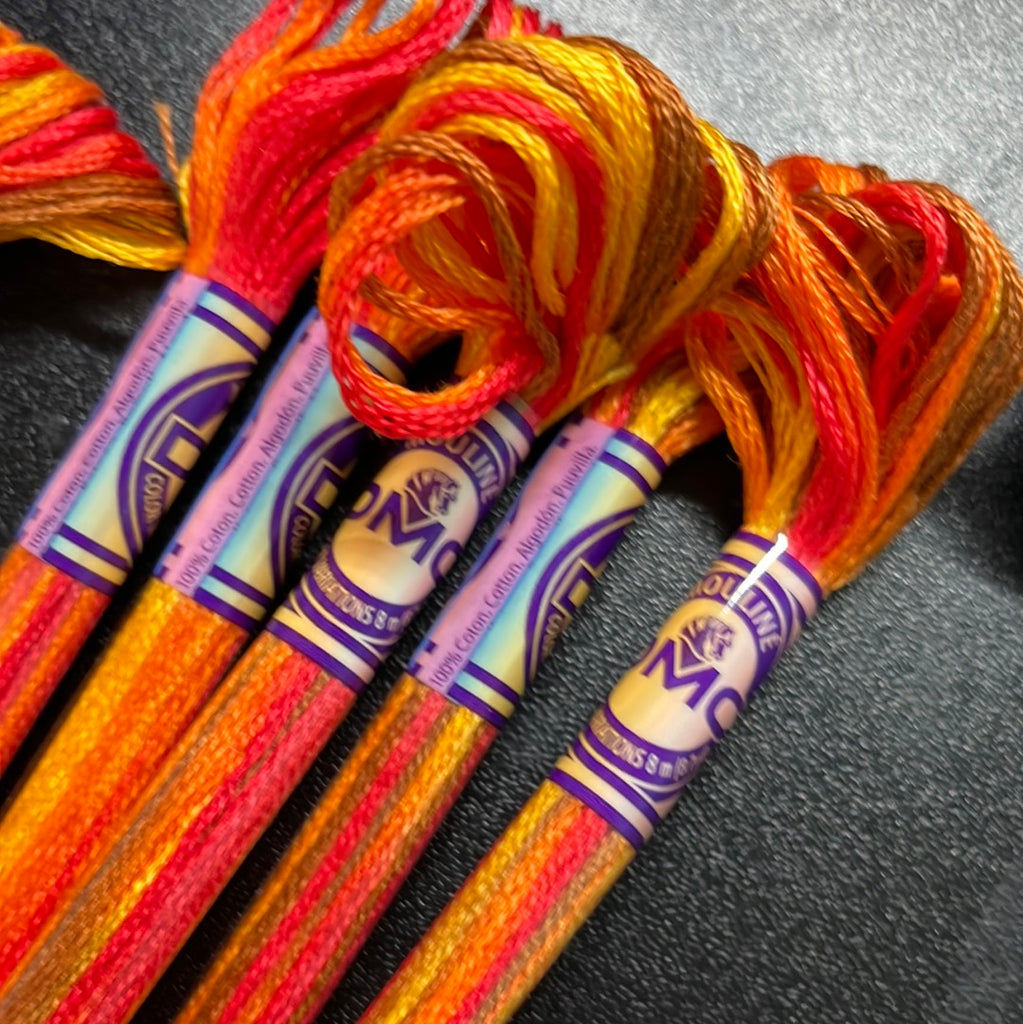 The beauty of unique color variations blended into one thread. Color Variations gives you the look of hand dyed floss with the added quality and reassurance that they are made by DMC. Twenty-four beautiful multi-color and tone on tone shades that are colorfast. Create one of a kind needlework designs with a new shade revealed every 5 to 7 stitches. Let the unique color reveal itself in just a few simple stitches