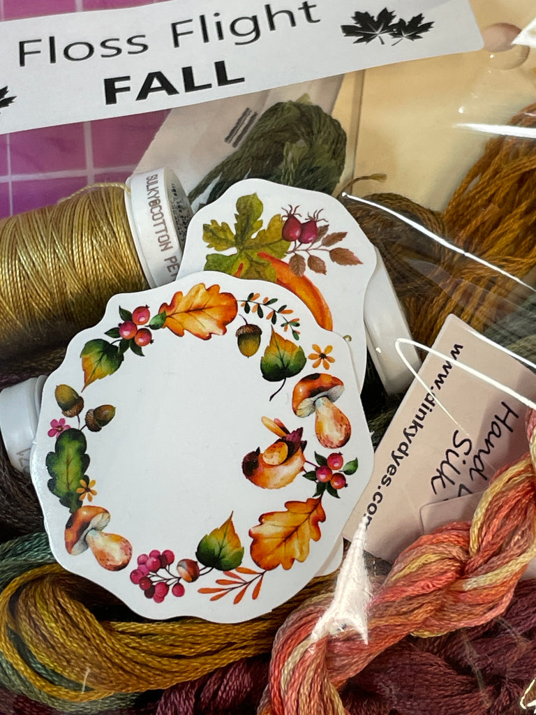 The Floss Flight consists of 6 cotton overdyed flosses and 2 Sulky and 2 Silks.