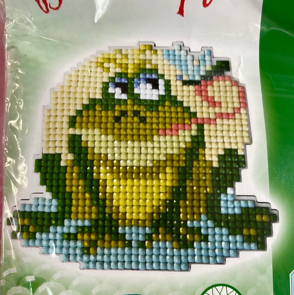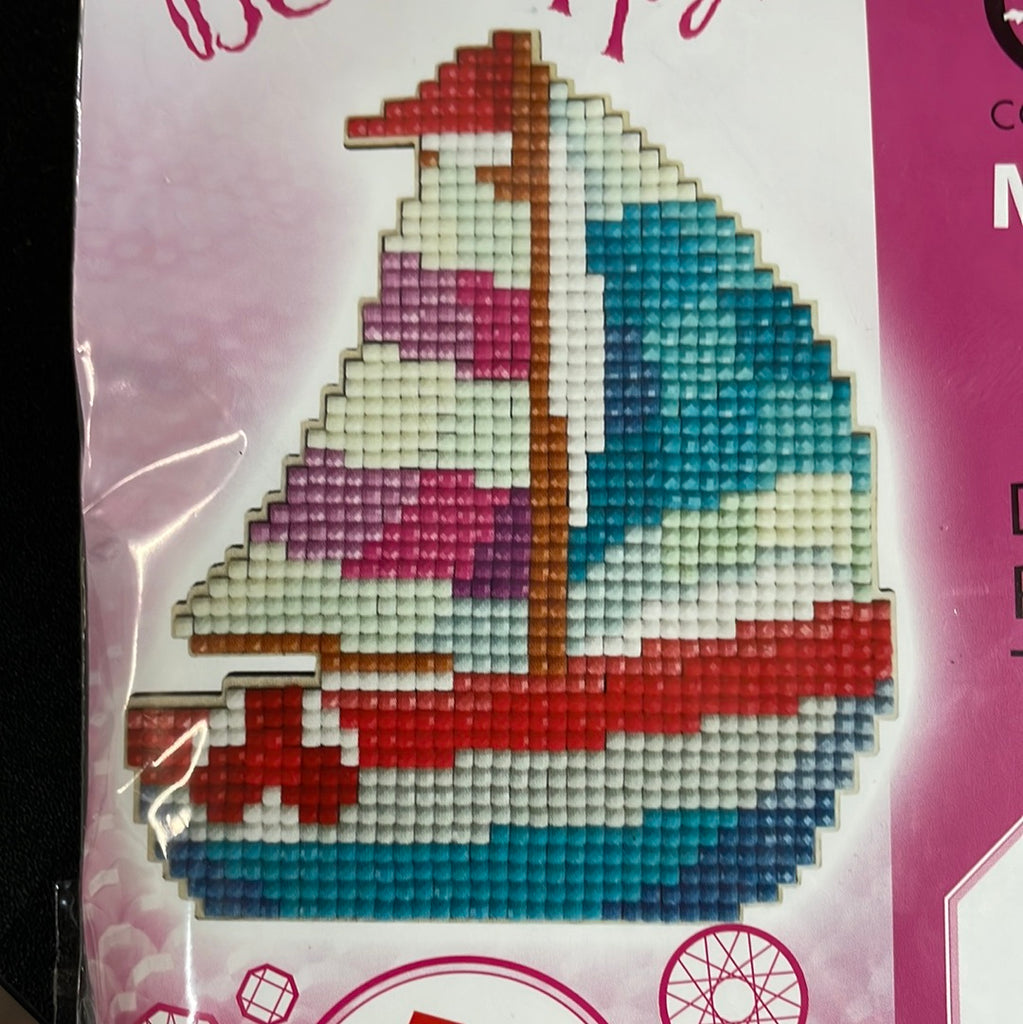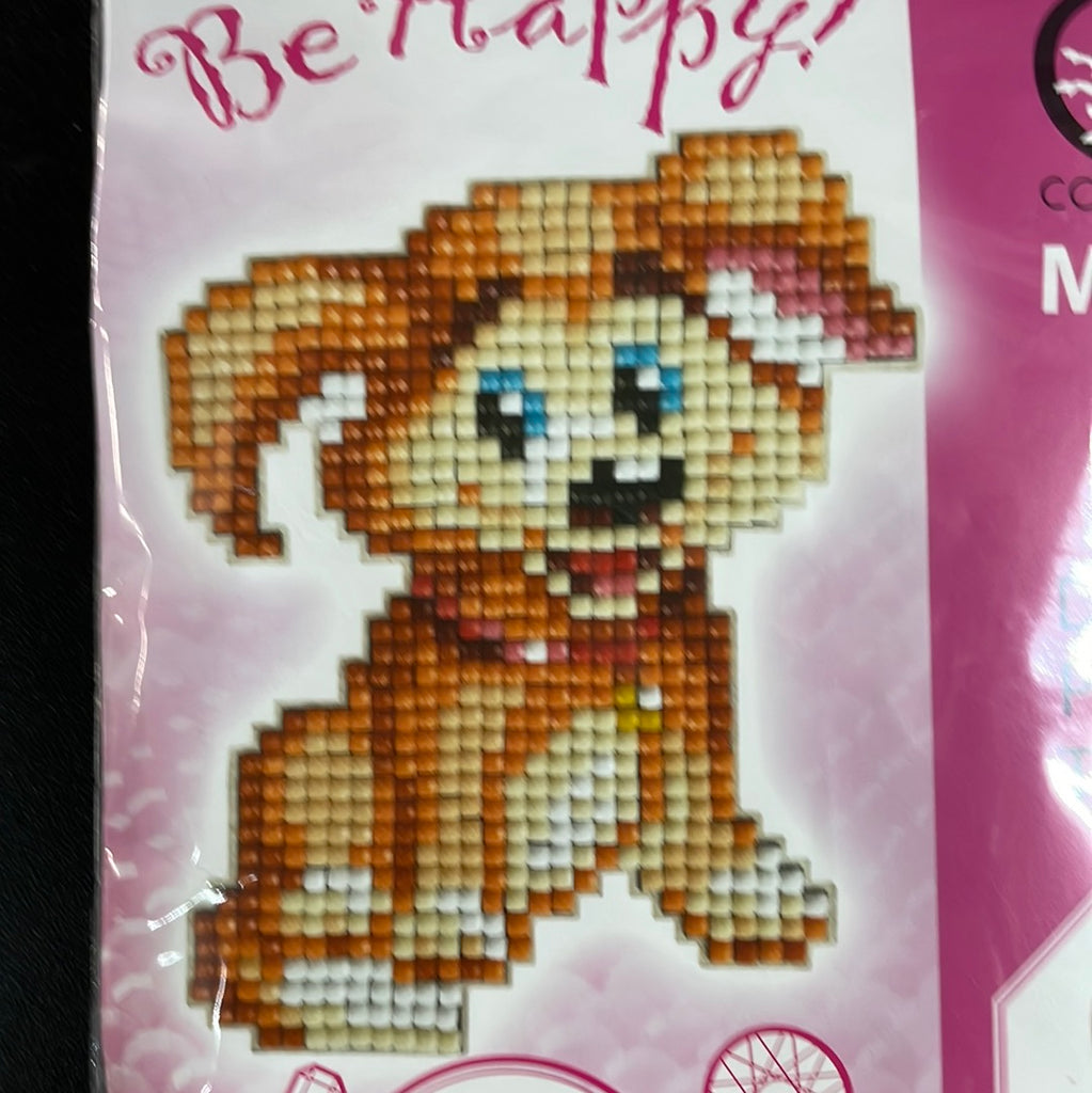 Great kits for kids! includes printed color chart, pre sorted dotz, stylus, glue pad and tray. Makes a magnet when finished. Comes in a re-usable bag