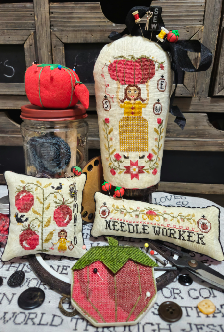 Lady: 63w x 106h Tomato:54w x 60h Needle Worker: 99w x 24h Needle Book: 55w x 44h