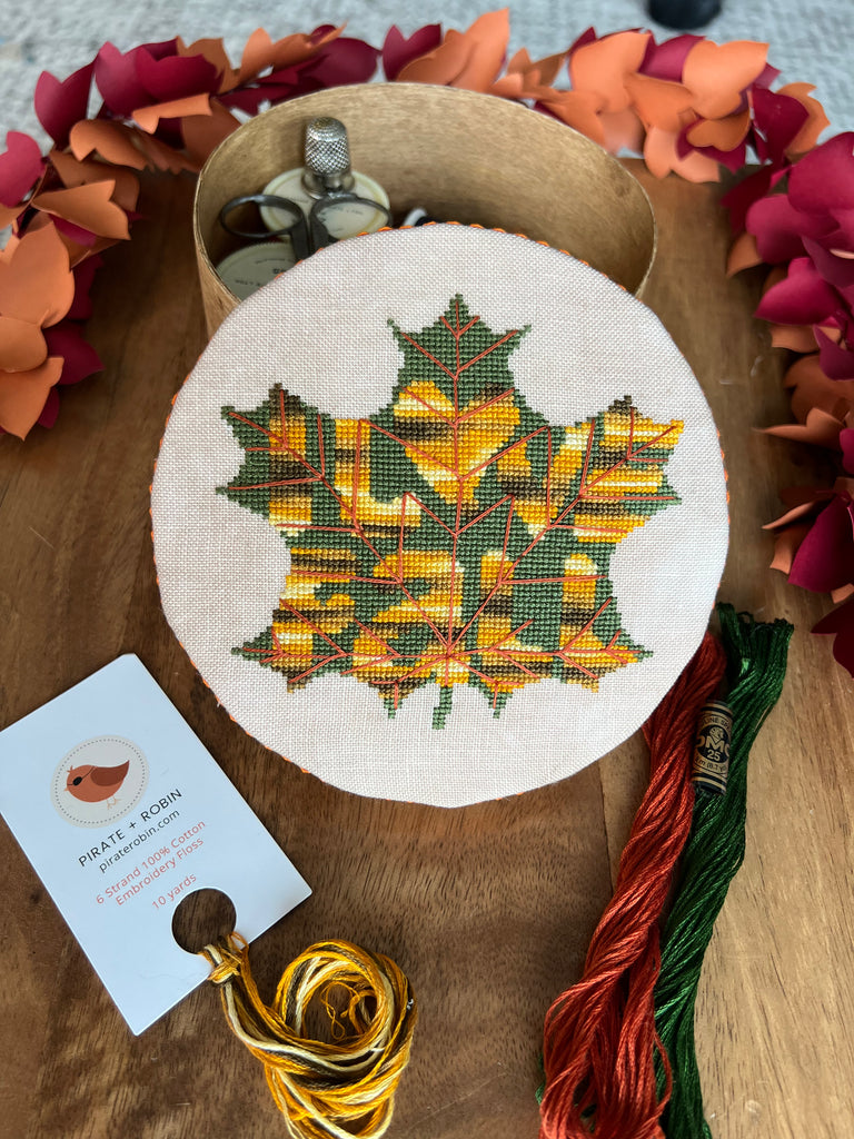 • Floss: Harvest Gold (variegated) lot 13125FH. From Pirate + Robin and 2 DMC colors: 920 and 3345