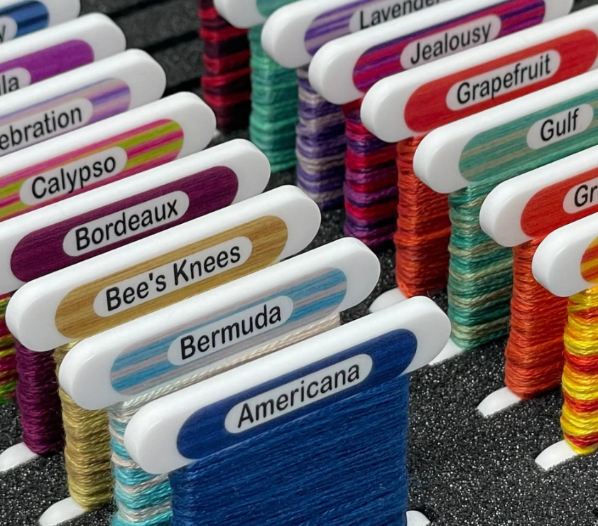 We are now offering acrylic bobbins for the beautiful Weeks Dye Works collection. The names and colour swatches are printed directly onto acrylic so they aren’t going anywhere - no more stickers coming off, hooray! The thin slits also hold the floss firmly to stop any unraveling. They are made from 3mm thick acrylic making them strong and durable.