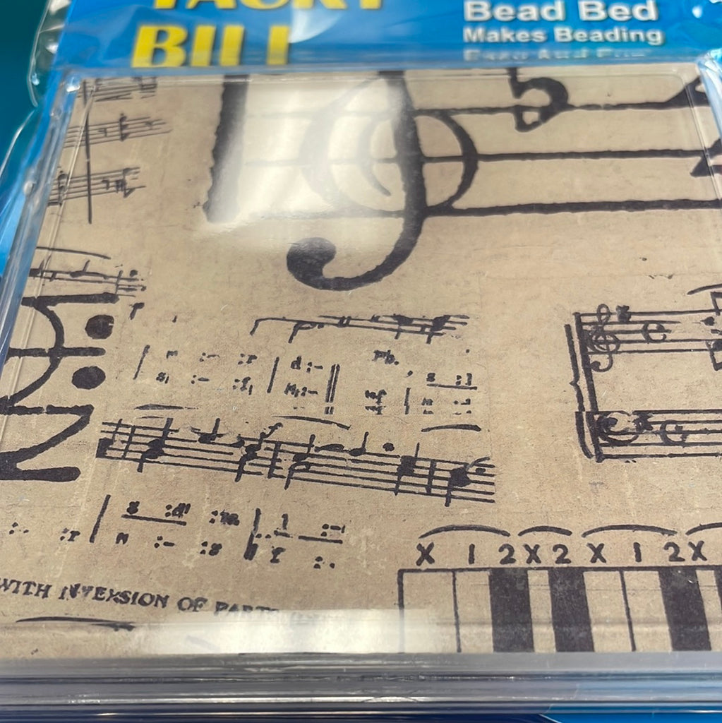 Tacky Bill Adhesive Bead Bed keeps tiny seed beads in place within an acrylic box on an acid free tacky surface