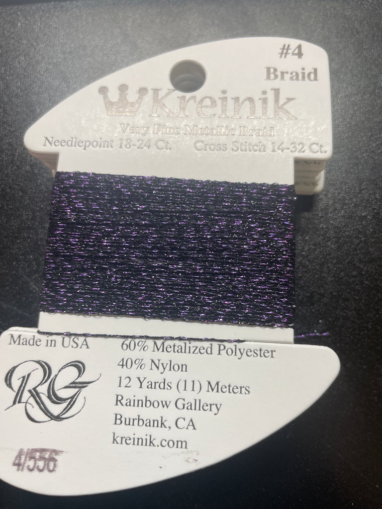 This is the premier metallic thread for cross stitching because it is so soft and easy to use. Stitch with Very Fine (#4) Braid in Cross Stitch (16-18 ct) and Needlepoint (for light details on 18-30 ct). It's also nice and thin for Machine Embroidery, Scrapbooking and Card Making embellishments.