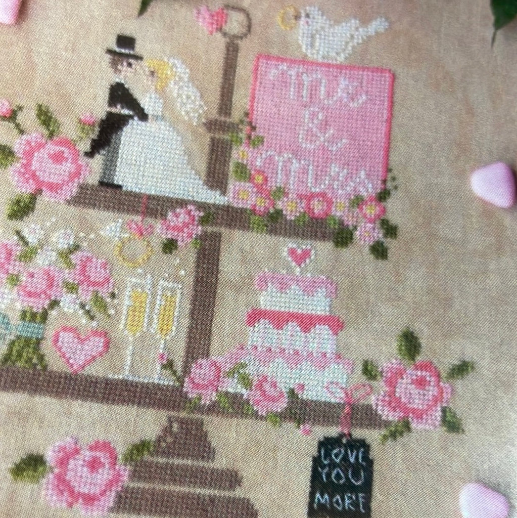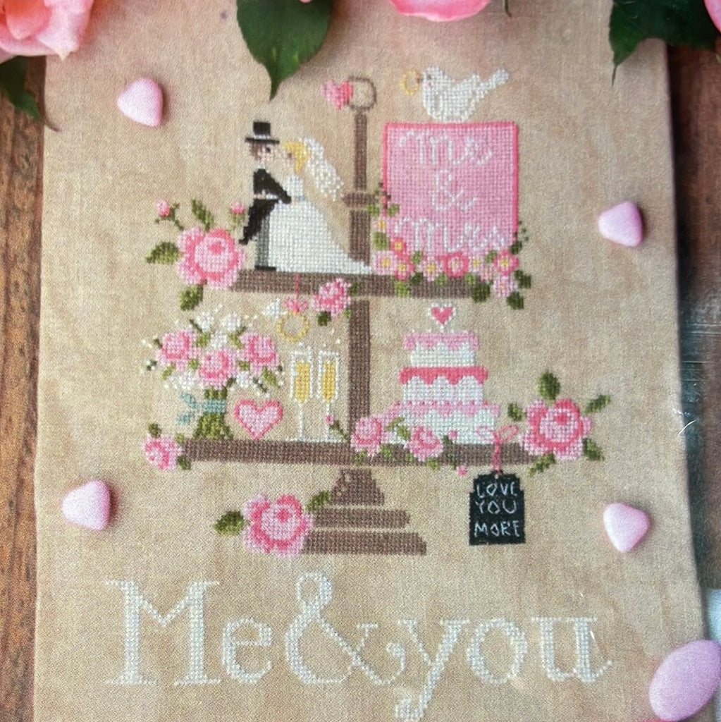 DMC: 151, 469, 646, 471, 927, 950, 3354, 3371, 3731, 3790, 3822, blanc
