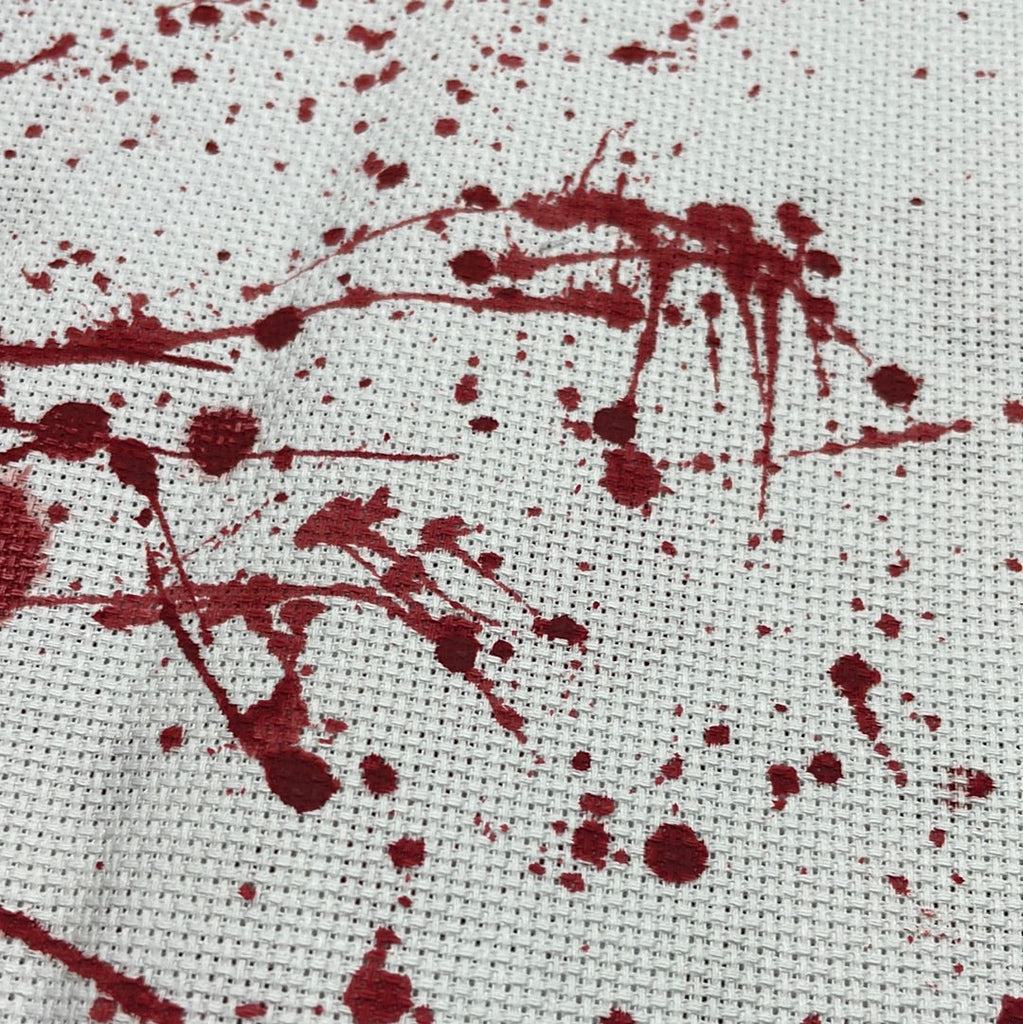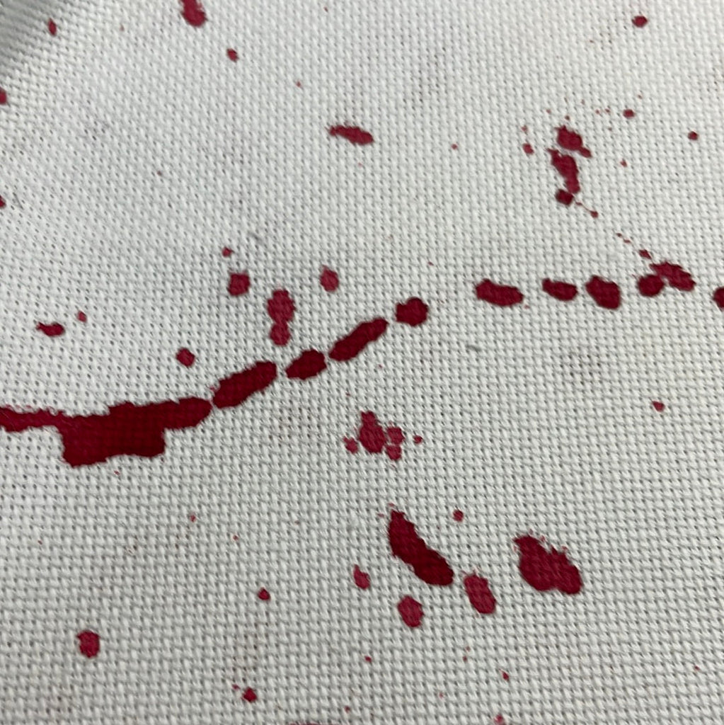 White fabric with red blood splatters.  Perfect for that horror inspired pattern!