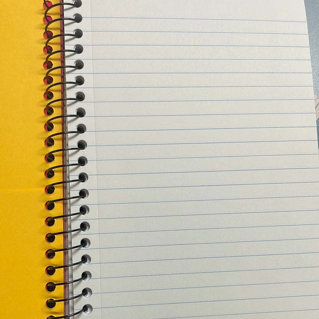Spiral bound notebook featuring lined paper and stitch-related covers.