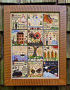 Model stitched on 40 Ct. Sand Dune using Needlepoint Silk over two threads. (DMC alternates are 797 3790 938 470 936 3822 782 3829 920 918 341 932 931 712 921 900 742 3743 646 white-2skeins 310-4skeins).