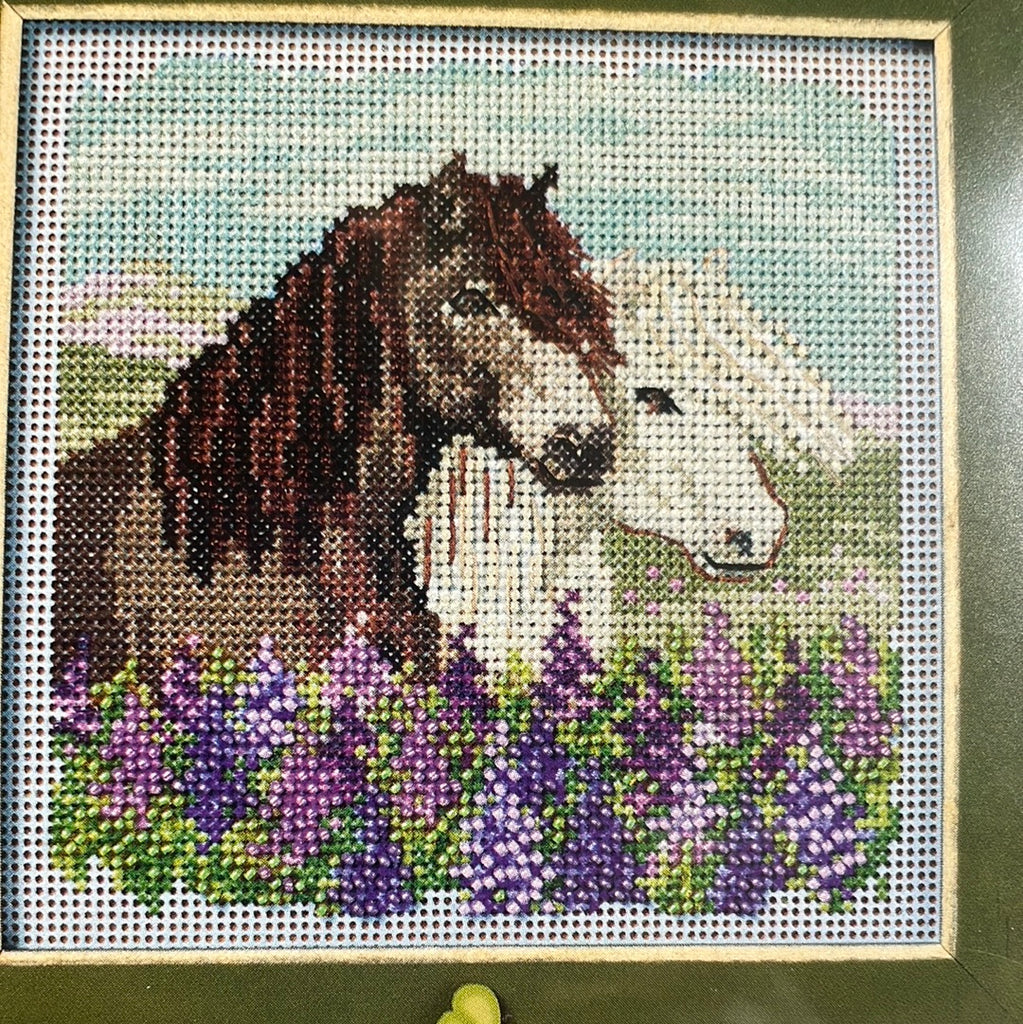 Kit includes perforated paper, needles, beads, charm, chart and floss