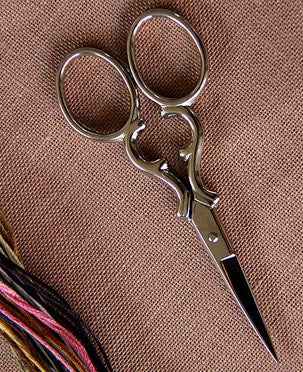 These are such pretty embroidery scissors. They are made by the Bohin company, which has been making sewing tools since 1833 in Normandy, France. They sort of have a heart shape. They also have very sharp tips which help you really get under the stitches when you need to remove mistakes. They are smooth and heavy and feel good in your hand. 3.5 inch with sheath