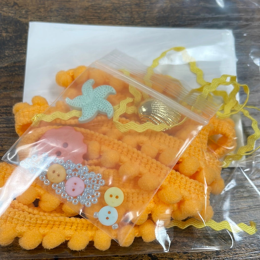 Pack also includes mini color-coordinating buttons, big buttons, beads, and some other surprises for finishing.