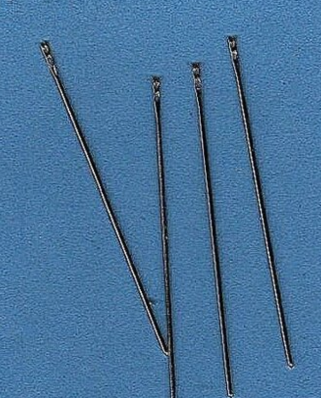 Thread your needle easily; no need to squint! On this tapestry needle, the top of the eye has been cut to allow the thread to pass through from above. To use, simply hold both your needle and thread with the thumb and forefinger of one hand, and with the other hand, grasp the thread, pulling it gently but firmly over the "V" down into the eye of the needle. From John James. Four needles per card.