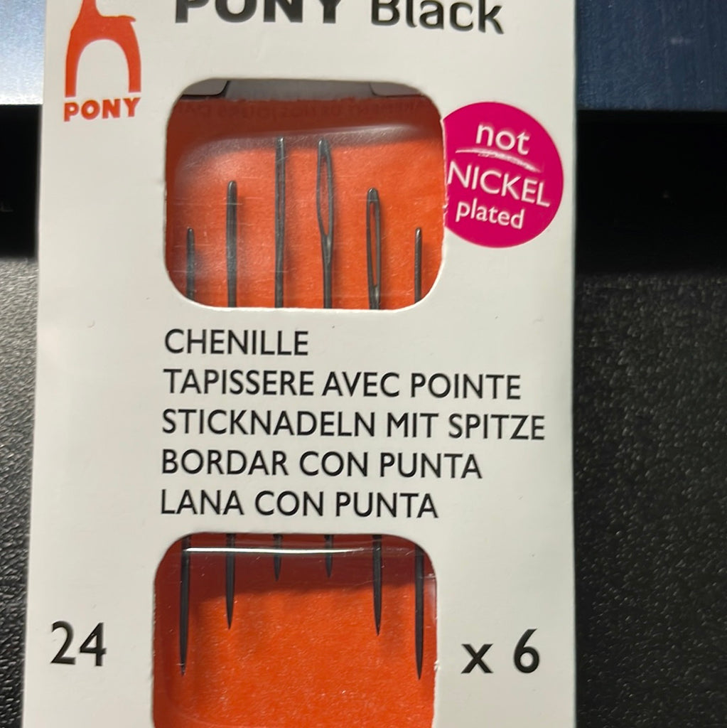 Pony all Black needles in a combo pack. 6  chenille needles each in sizes 24.