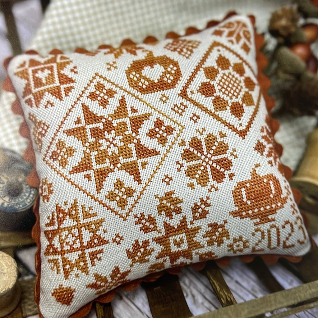 model uses 3 skeins of Classis Colorworks Blooming Crocus when stitched on 32 count fabric