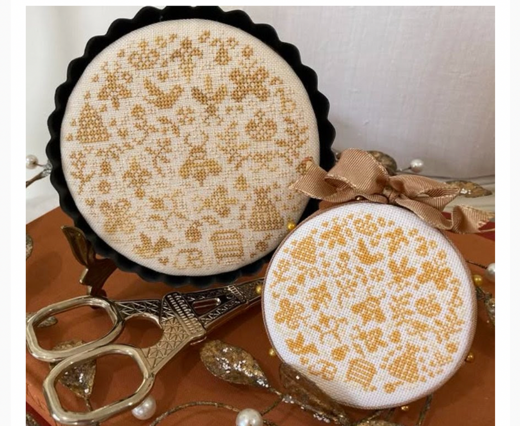 Over two model: finished in a tin; over one model finished as round with ribbon and pins