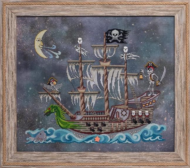 General Information: Stitched using 2 threads of floss over 2 threads of fabric. Includes 6 colors of Rainbow Gallery Petite Silk Lame’ Braid, and 8 buttons from JABCO (Just Another Button Company).